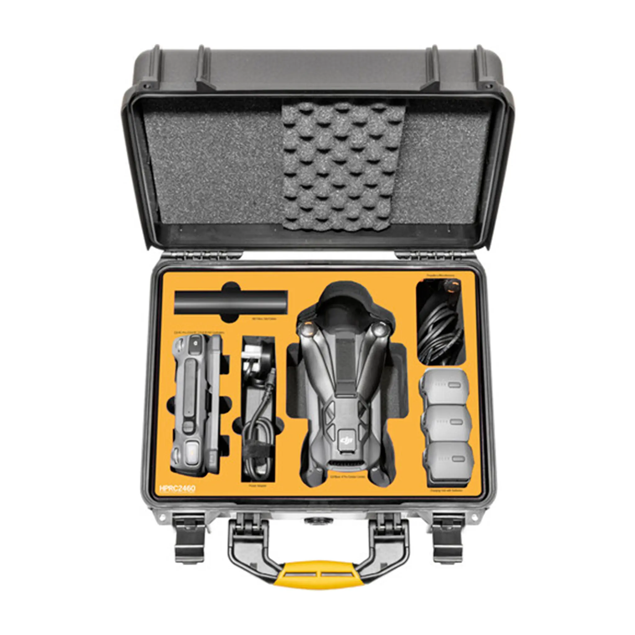 De HPRC 2460 is gemaakt van lichtgewicht maar zeer stevig harsmateriaal dat water, stof, schokken en corrosie weerstaat. Dankzij het voorgesneden Vector Panel schuim heb je overzichtelijke compartimenten voor je Mavic 4 Pro Creator Combo, controller(s), batterijen, lade‑hub, adapters en accessoires. De foam zorgt voor demping en voorkomt beweging en schade tijdens transport.